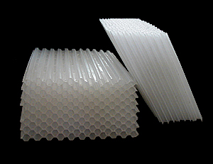 我廠斜管、斜板填料的材質(zhì)有聚氯乙烯、聚丙烯、乙丙共聚三種。特別是乙丙共聚斜管,韌性強、組裝剛度好、不變形、不脆裂、抗老化、